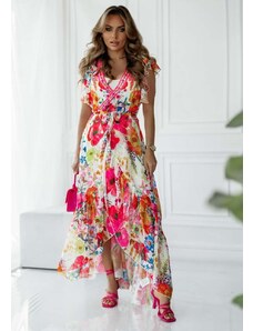 FashionWoman Ροζ/ Μωβ Maxi Καλοκαιρινό Φόρεμα με Print και σκίσιμο στο πόδι