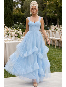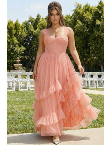 Parizianista Γυναικείο Φόρεμα Maxi Τούλινο Με Κορσέ & Βολάν - Σομόν - 040014