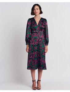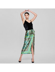 Deesse Multicolour print silk touch satin maxi skirt with belt 02365 MULTICOLOUR PRINT