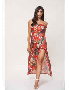 FIBES Κεραμιδί μακρύ σεμιζιέ φόρεμα, σατέν 5-5436 Bordeuax, Χρώμα Κόκκινο, Μέγεθος 52