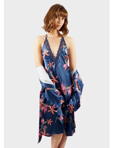 Moongirl Γυναικείο set saten ρόμπα-νυχτικό ιδιαίτερη πλάτη λεπτομέρεις δαντέλας.Saten Collection ΜΠΛΕ