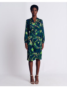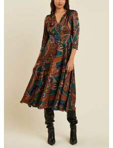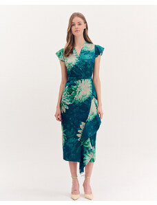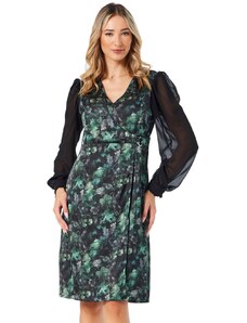 ANNA RAXEVSKY Πράσινο σατέν φλοραλ φόρεμα D25208 GREEN, Χρώμα Πράσινο-Λαδί, Μέγεθος S