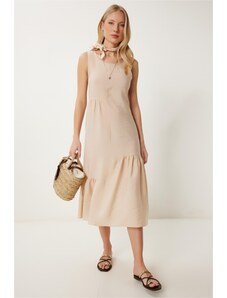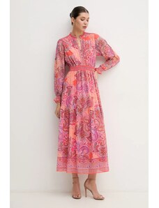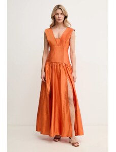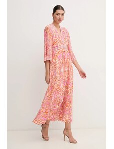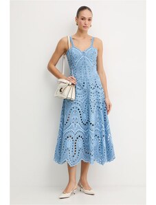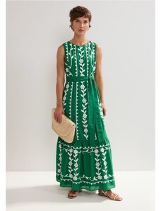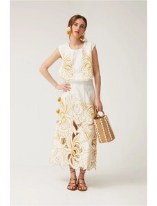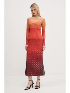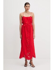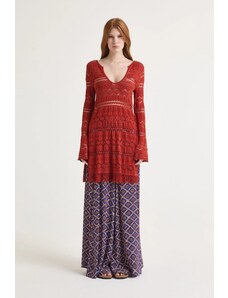Maliparmi Γυναικείο Πλεκτό Καφτάνι με Δαντελέ Πλέξη, Κρόσσια και Σκισίματα Regular Fit σε Κόκκινο