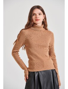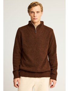 Prince Oliver Πουλόβερ Ζιβάγκο Καφέ με Links - Knit Πλέξη Modern Fit