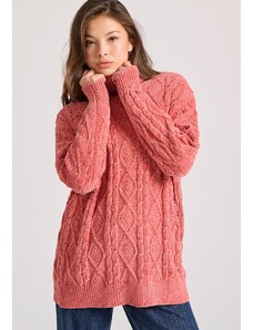FUNKY BUDDHA Loose fit σενίλ πουλόβερ ζιβάγκο με σχέδιο στην πλέξη