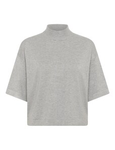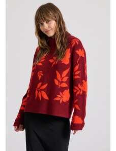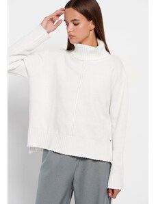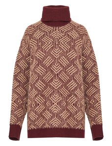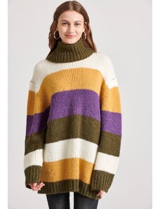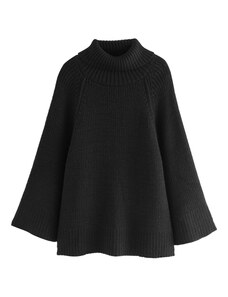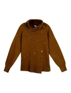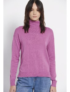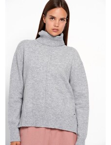 FUNKY BUDDHA Oversized πλεκτή μπλούζα με ψηλό λαιμό και πλαϊνό σκίσιμο