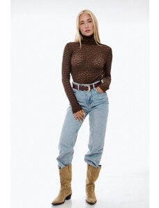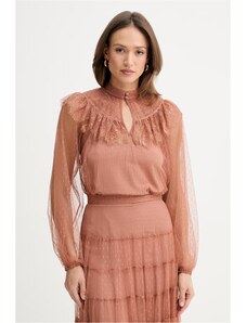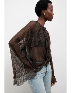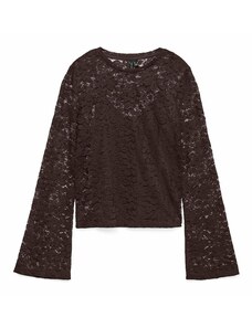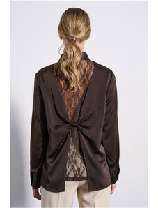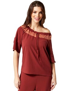 ANNA RAXEVSKY Γυναικεία σοκολά κοντομάνικη μπλούζα με δαντέλα B25130 CHOCOLATE, Χρώμα Καφέ, Μέγεθος M