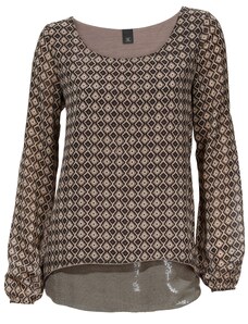 Essentiel Antwerp Μπλούζα 'Joy' ανοικτό καφέ / γκρι μελανζέ / μαύρο