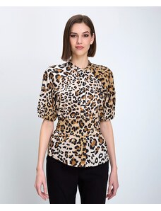 Caractere Γυναικείο Πουκάμισο Regular Fit Βαμβακερό Με Animal Print Και Balloon Μανίκια