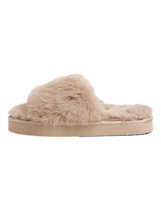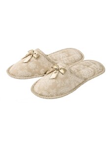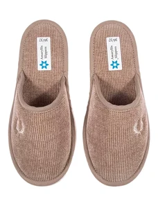 FMS Γυναικείες Παντόφλες Κοτλέ με Κέντημα, Χρώμα: Μόκα