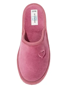 FMS Γυναικείες Παντόφλες Βελούδινες με Κέντημα Καρδιά, Χρώμα: Σάπιο Μήλο