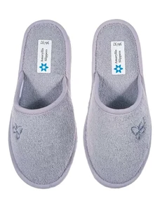 FMS Γυναικείες Παντόφλες Πετσετέ με Κέντημα Πεταλούδα, Χρώμα: Γκρι