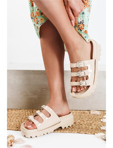Ligglo Μπεζ Παντόφλες Θαλάσσης με Τριπλό Λουρί