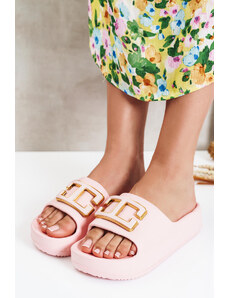 Ligglo Ροζ Παντόφλες με Μεταλλική Αγκράφα σε Χρυσό Περίγραμμα