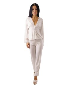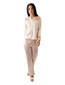 Νυφικές, μακρυμάνικες γυναικείες πυτζάμες με μακριά παντελόνια με δαντέλα