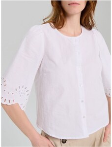Sinsay - Πουκάμισο μπλούζα με δαντελωτό τελείωμα μανικιών - λευκο