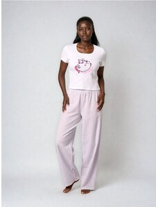 Sinsay - Πιτζάμα με μακρύ μανίκι και παντελόνι από ελαφρύ ύφασμα Barbie - κρεμ