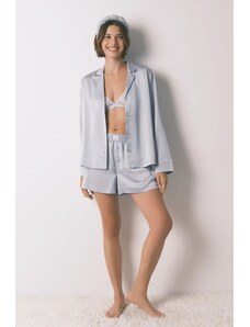 Milena Γυναικείο Σατέν Babydoll Σετ με Σορτσάκι, Χρώμα: Πετρόλ