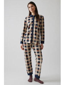 Cosy Club Κουμπωτή Γυναικεία Πυτζάμα 52603 minerva - blank-pink plaid