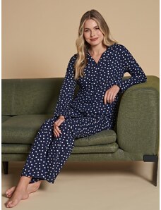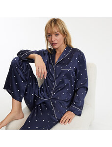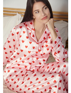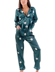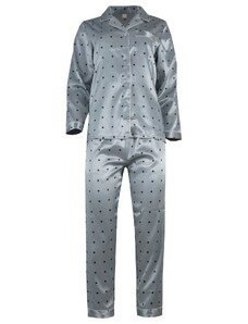 Gsecret Γυναικεία πυτζάμα σατέν με κουμπιά all print pois. Saten Collection ΣΙΕΛ