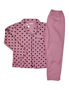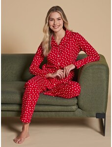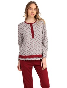 Gsecret Γυναικεία πυτζάμα σατέν με κουμπιά all print pois. Saten Collection ΜΠΟΡΝΤΩ