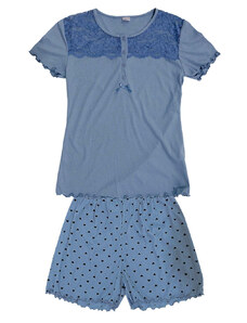 Ustyle Γυναικεία σετ πιτζάμας καλοκαιρινή βαμβακερή με καρδούλες Μπλε US-5003
