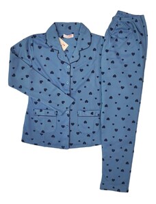 Ustyle Γυναικεία σετ πιτζάμας χειμερινό με fleece με καρδούλες Μπλε US-2376-2381