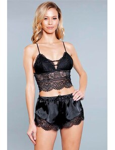 Baby Doll Dorina ORIGINS - Μαύρο SOFT ΣΑΤΕΝ - Δαντέλα - Polyamide - Regular Fit