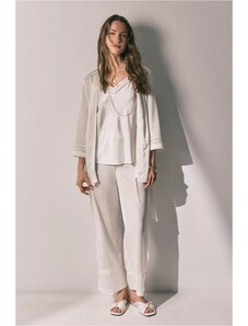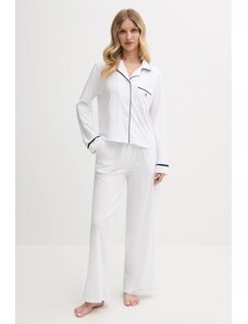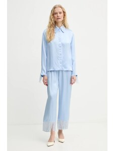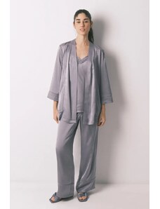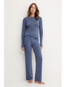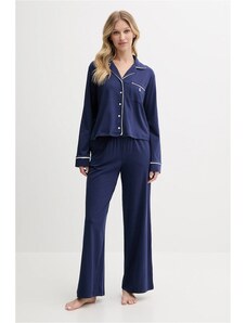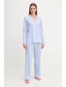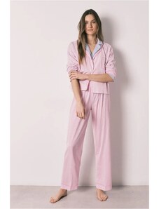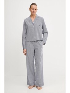 FashionWoman Γυναικείο βαμβακερό σετ πιτζάμας μπλε με ριγέ παντελόνι.
