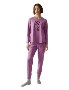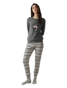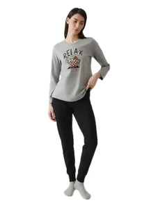 Pink Label Χειμερινό Γυναικείο Σετ Πιτζάμας Βαμβακερό Hazelnut W1791-Type