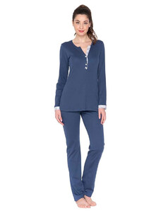 Minerva Χειμερινό Γυναικείο Σετ Πιτζάμας Βαμβακερό Navy Μπλε X-mas Elf 51939 - ΜΠΛΕ ΜΑΡΙΝ