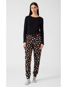 MINERVA Εμπριμέ Γυναικείο Παντελόνι με μπασκα 53011 - black-chili bacon