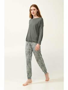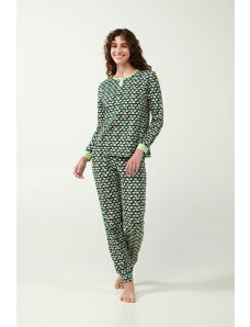 Vamp γυναικεία πιτζάμα πράσινη εμπριμέ cotton regular fit 21321