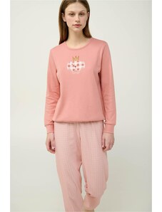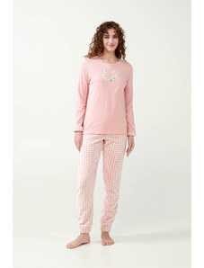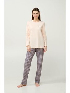 Pink Label Χειμερινό Γυναικείο Σετ Πιτζάμας Βαμβακερό Hazelnut W1791-Type
