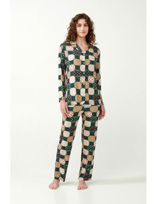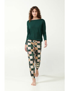 Trendyol Πιτζάμα χρυσοκίτρινο / σκούρο πράσινο / κόκκινο / λευκό