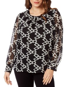 ANNA RAXEVSKY Γυναικείο ασπρόμαυρη μπλούζα μουσελίνα lurex B20240 Black, Χρώμα Ασπρόμαυρο, Μέγεθος S
