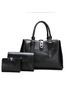 Τσάντα ώμου τριθέσια για υπολογιστή 15¨ & Α4 σε μαύρο δέρμα Hexagona R6RJ53 - 28265-01