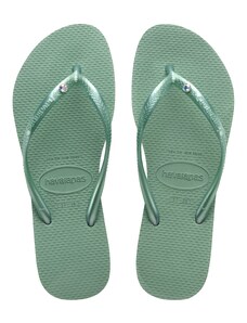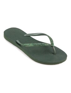 Γυναικείες σαγιονάρες Havaianas Slim Glitter Flourish - 4147122-6617 σε υπέροχο λαχανί χρώμα με glitter στα λουράκια και το logo της εταιρείας για πραγματικά κομψές εμφανίσεις. Ιδανικές για να φορέσετε στις πρωινές βόλτες σας με ελαφριά ρούχα για άνεση και στυλ.