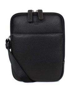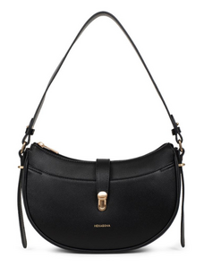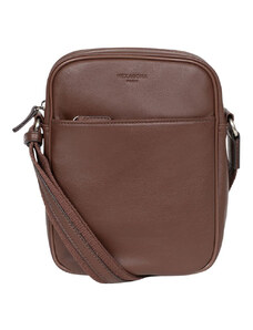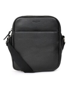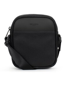 HEXAGONA Δερμάτινη τσάντα ταχυδρόμου μαύρη χιαστί WH39J - 24853-01