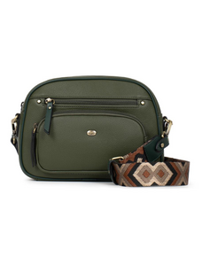 HEXAGONA Τσάντα τριθέσια χιαστί 20x14x6 σε λευκό με πράσινο χρώμα 29VER806 - 29806-59