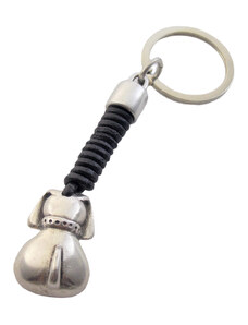 ΓΑΙΑ Μπρελόκ 0888 χειροποίητο σκύλος από δέρμα και κασσίτερο μαύρο/ασημί