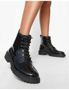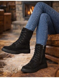 INSHOES Γυναικεία μποτάκια με κορδόνια και τρακτερωτή σόλα Μαύρο
