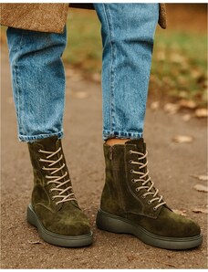 INSHOES Γυναικεία δερμάτινα μποτάκια ελληνικής κατασκευής σε απλή γραμμή Λαδί