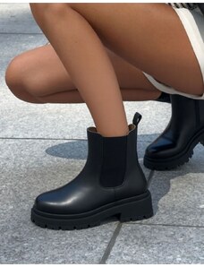 INSHOES Γυναικεία δερμάτινα μποτάκια ελληνικής κατασκευής σε απλή γραμμή Μαύρο