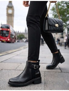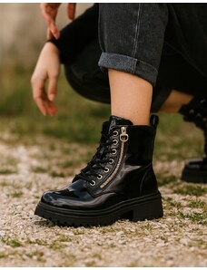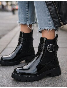 INSHOES Γυναικεία μποτάκια λουστρίνι με διακοσμητικό τοκά Μαύρο