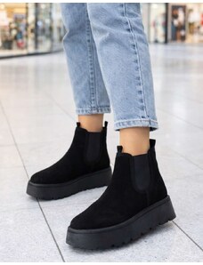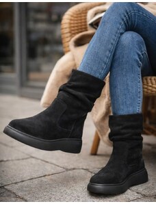 INSHOES Δίσολα suede μποτάκια μονόχρωμα με λάστιχο Μαύρο