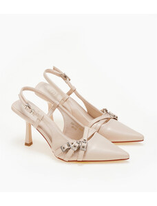 Issue Slingback γόβες με λουράκι και διακοσμητικό φιόγκο - Μπεζ - 035014