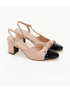 Issue Slingback γόβες λουστρίνι με ιδιαίτερη τόκα - Μπεζ - 035011