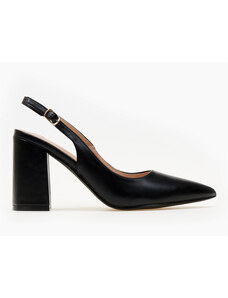 Issue Μυτερές εξώφτερνες γόβες με χοντρό τακούνι και αγκράφα - Μαύρο - 032011