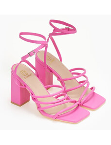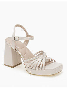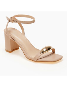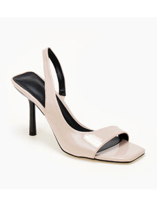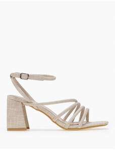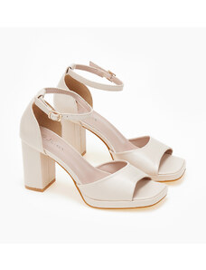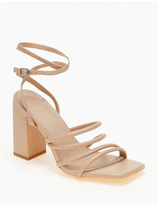 Issue Πέδιλα σε καρέ γραμμή με λεπτό τακούνι - Μπεζ - 035011